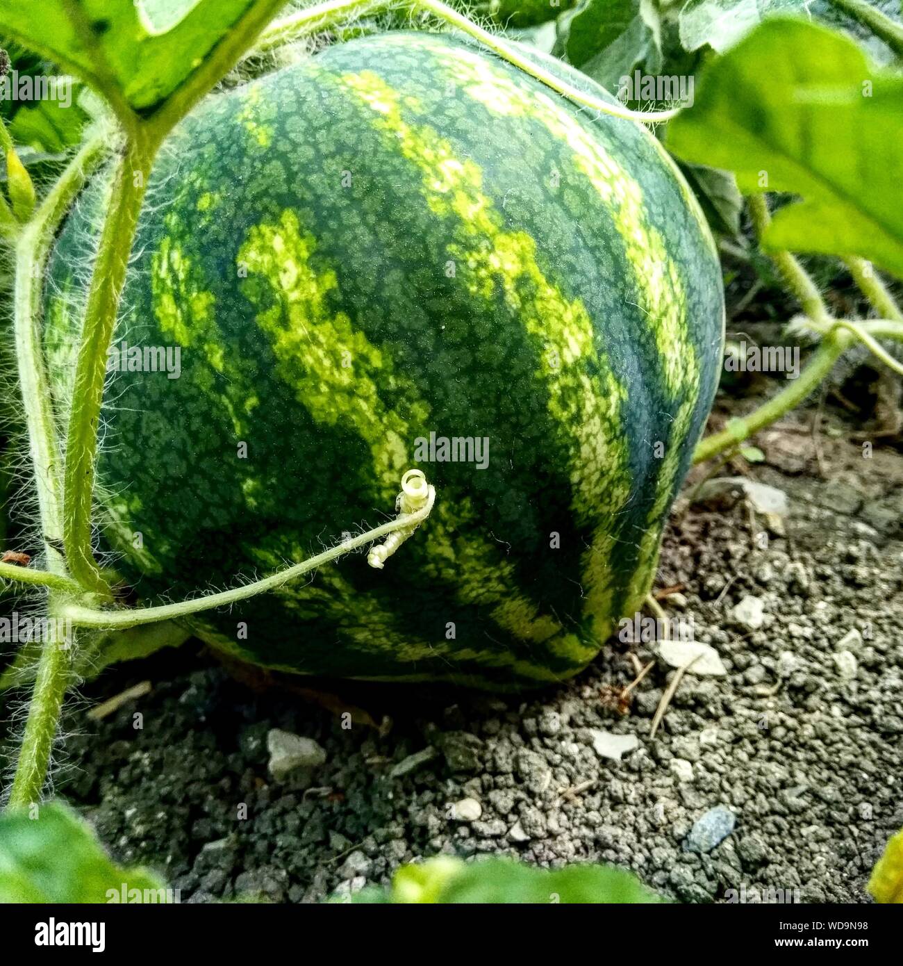 Close Up Of Watermelon Growing On Plant Stock Photo Alamy